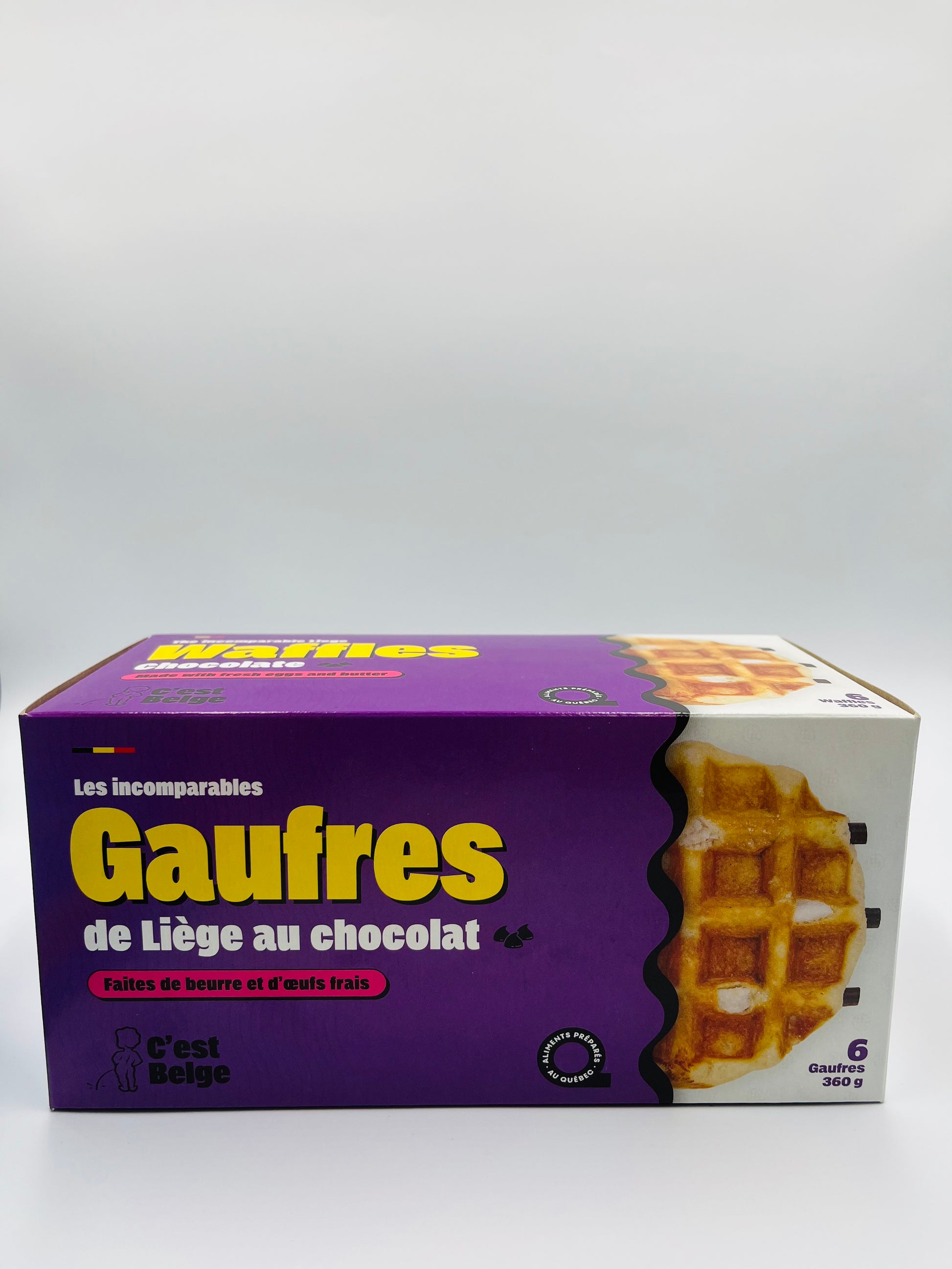 Our incomparable chocolate Liège waffles, made with butter and fresh eggs.